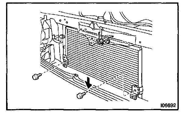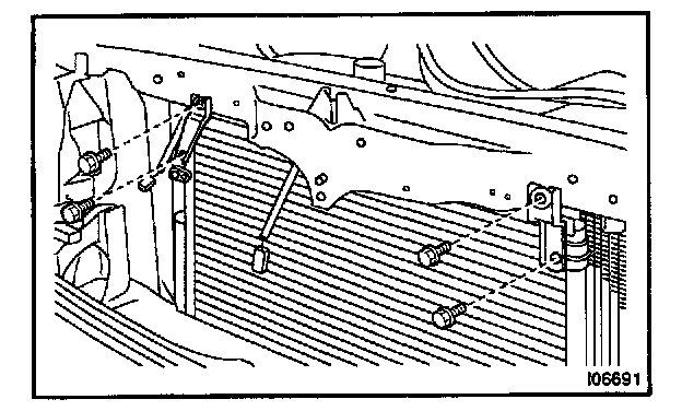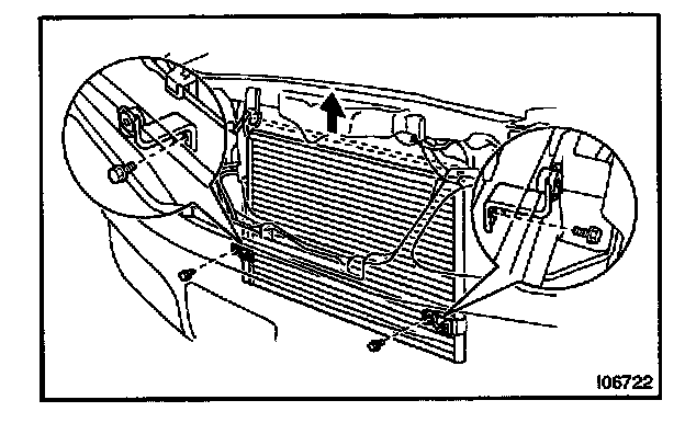 b. Lift up the condenser, then remove the 4 bolts and 2 lower bracket.