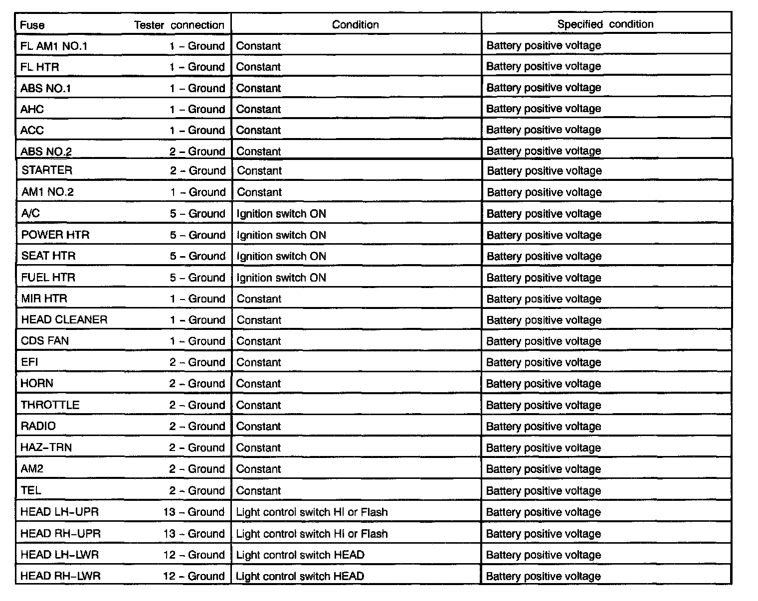 2. INSPECT DRIVER SIDE JUNCTION BLOCK FUSE CIRCUIT