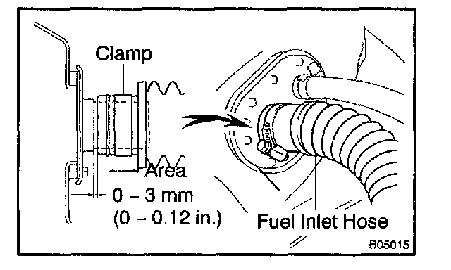 b. Check the fuel tank vapor vent system hoses and connections for looseness, sharp bends or damage.