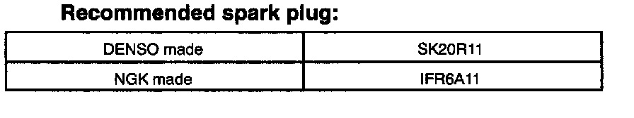 - Spark plug should be replaced every 100,000 km (60,000 miles).