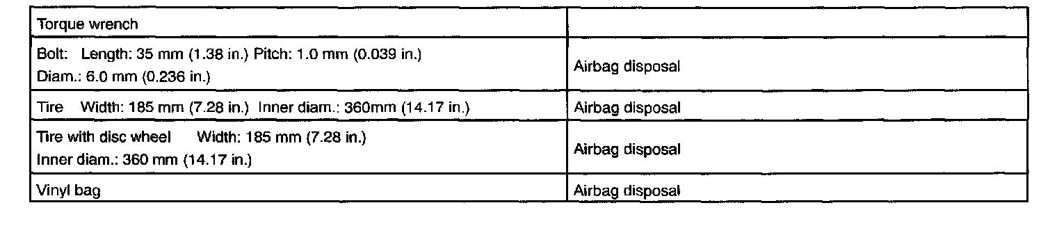 Supplemental Restraint System / Recommended Tools: