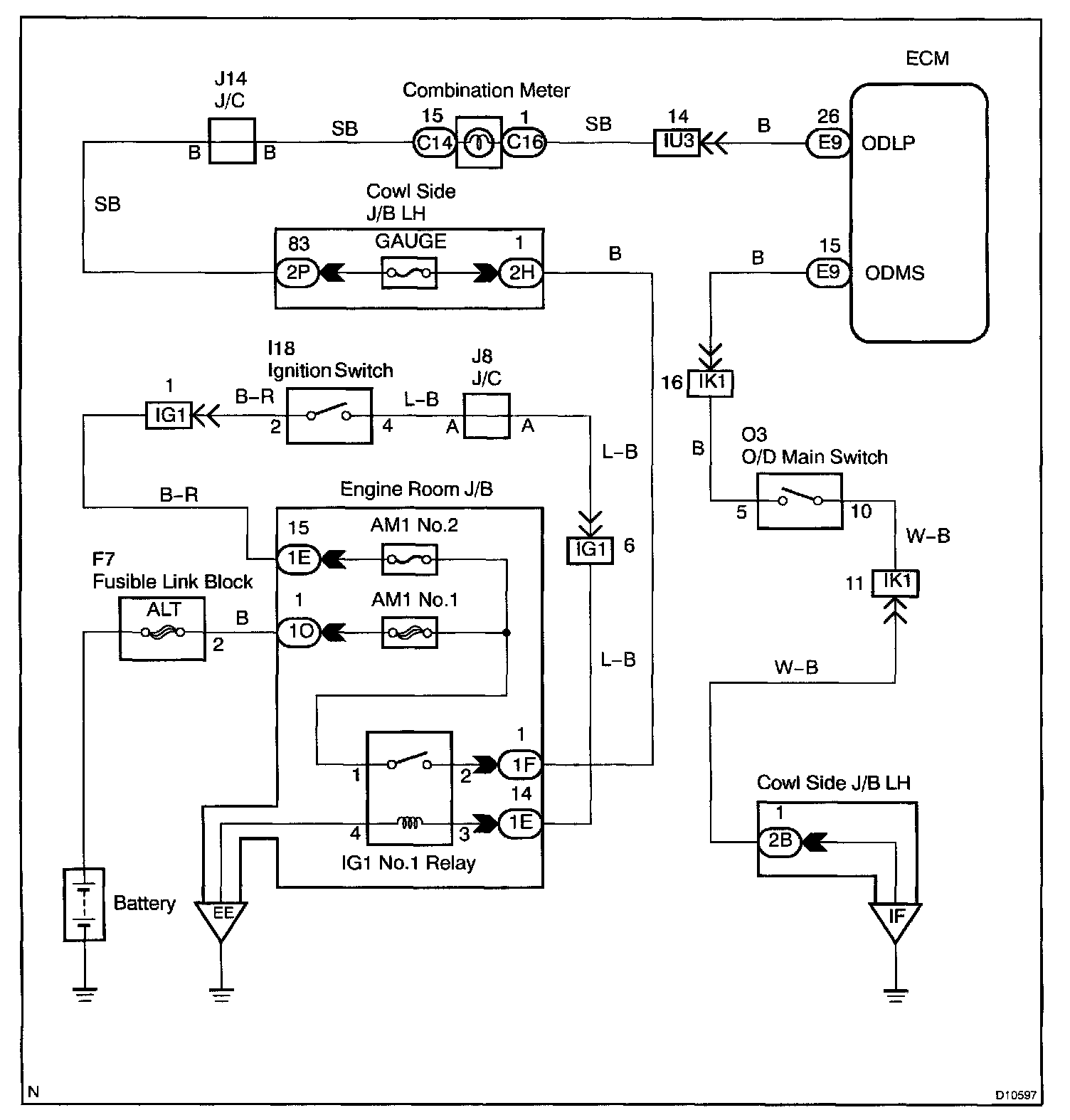O/D Main Switch & O/D OFF Indicator Light CircuitCIRCUIT DESCRIPTION