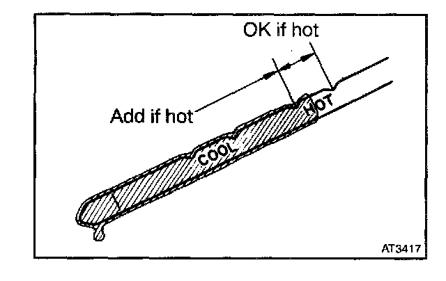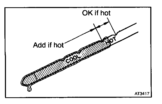 - Only use the COOL range on the dipstick as a rough reference when the fluid is replaced or the engine does not run.