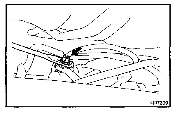 5. While holding the shift lever lightly toward the R position side, tighten the shift lever nut.