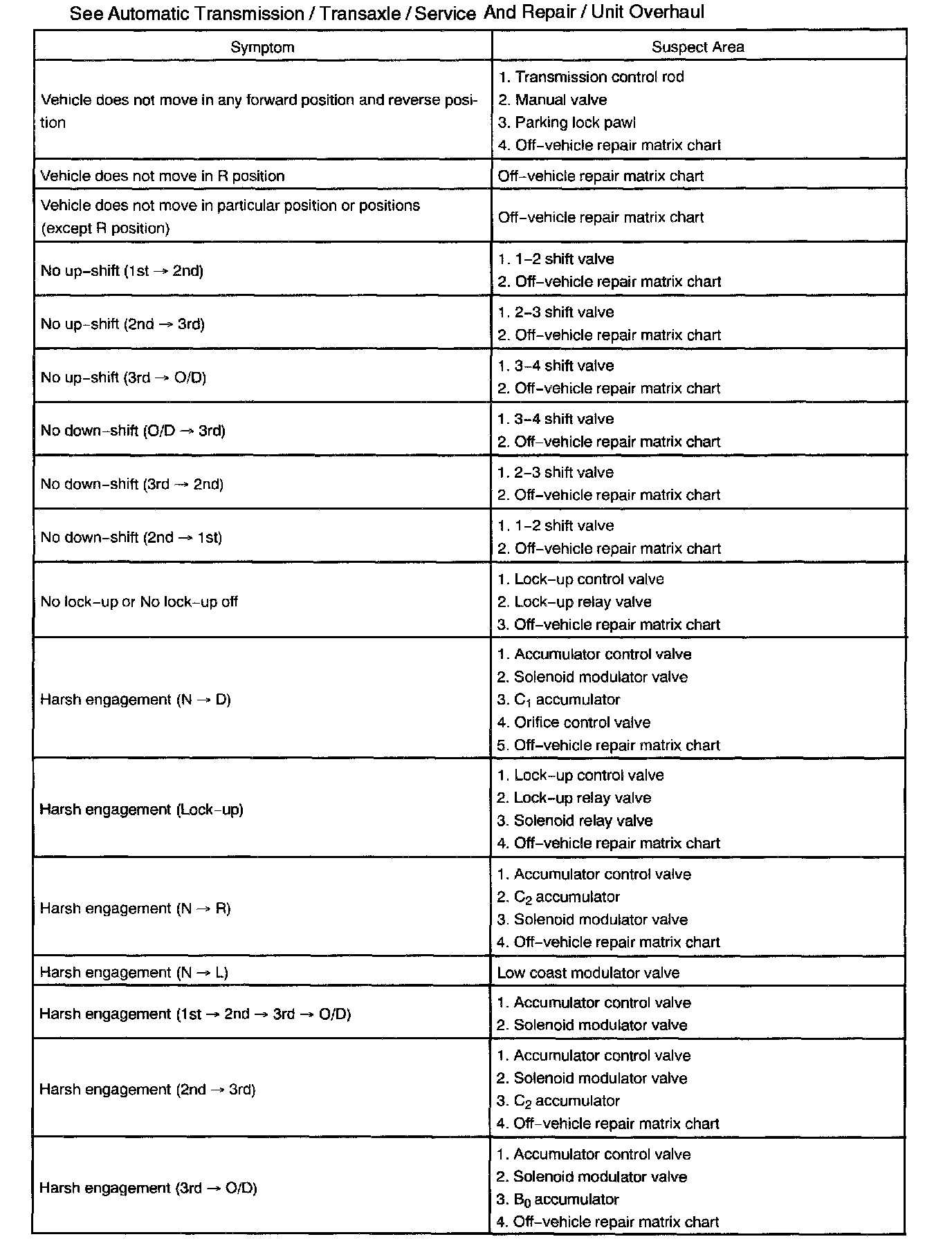 Chapter 3: Off-vehicle Repair Matrix Chart