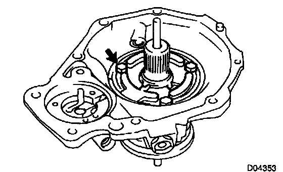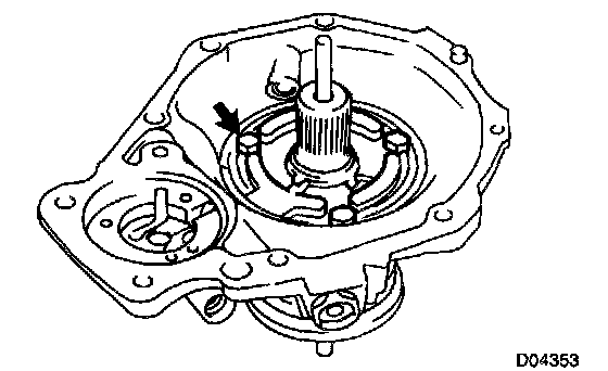 b. Using a feeler gauge, measure the body clearance between the drive rotor and extension housing.