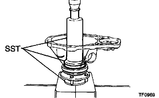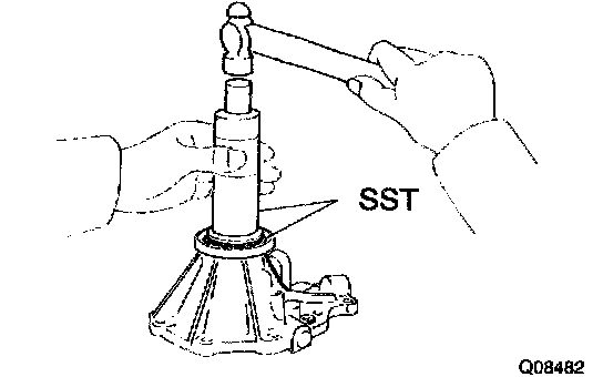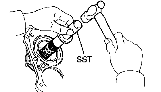 b. Using SST and a hammer, drive in the oil seal.