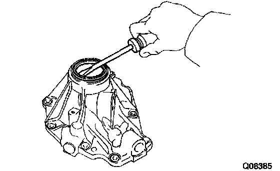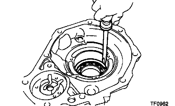 Using a screwdriver, pry out the oil seal from the rear extension housing.