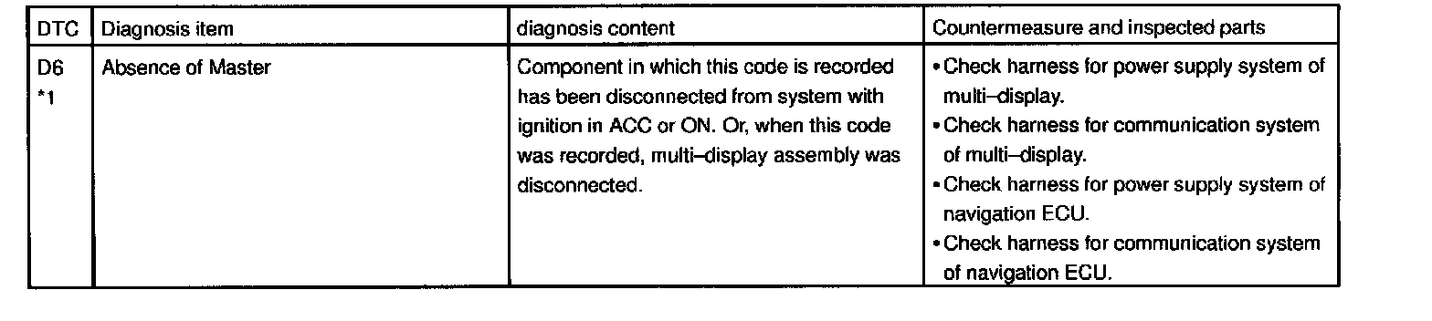- *5: When 210 sec. has passed after pulling out the power supply connector of the master component with the ignition switch in ACC or ON, this code is stored.