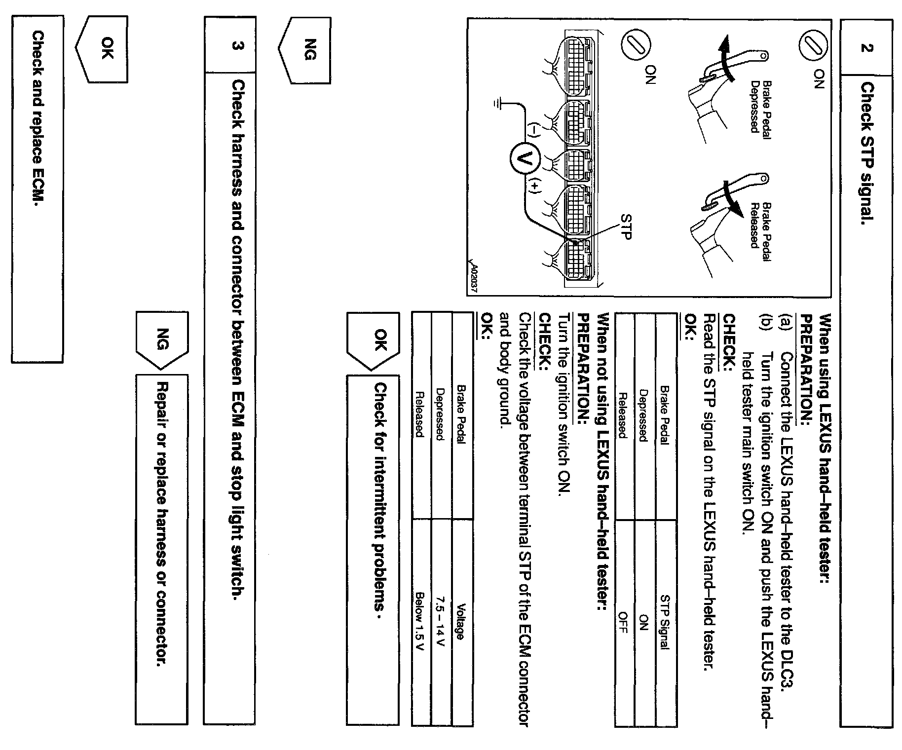 The STP signal is used mainly to control the fuel cut-off engine speed (The fuel cut-off engine speed is reduced slightly when the vehicle is braking.).