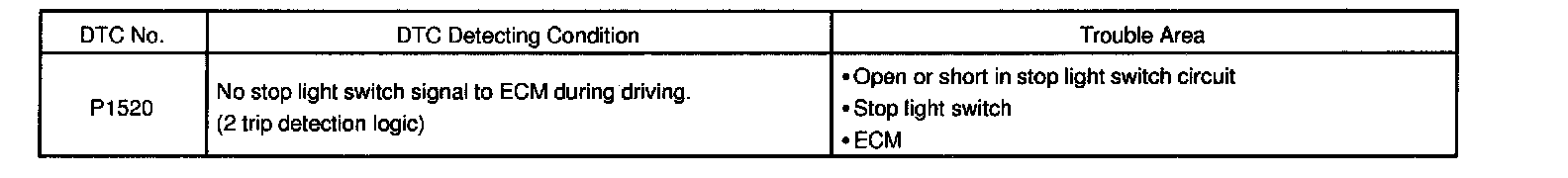 When the brake pedal is operated, this switch sends a signals to ECM. Then the ECM cancels operation of the lock-up clutch while braking is in progress.