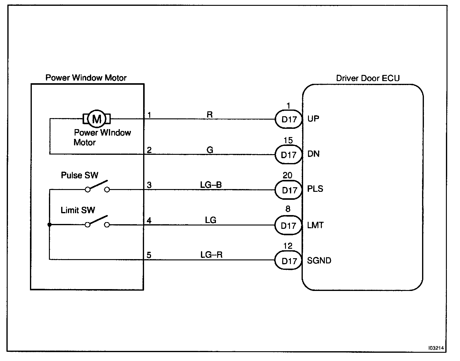 Jam protection pulse switch is built-in the power window motor. Pulse switch outputs