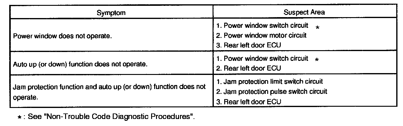 Problem Symptoms Table - Power Window Control System:
