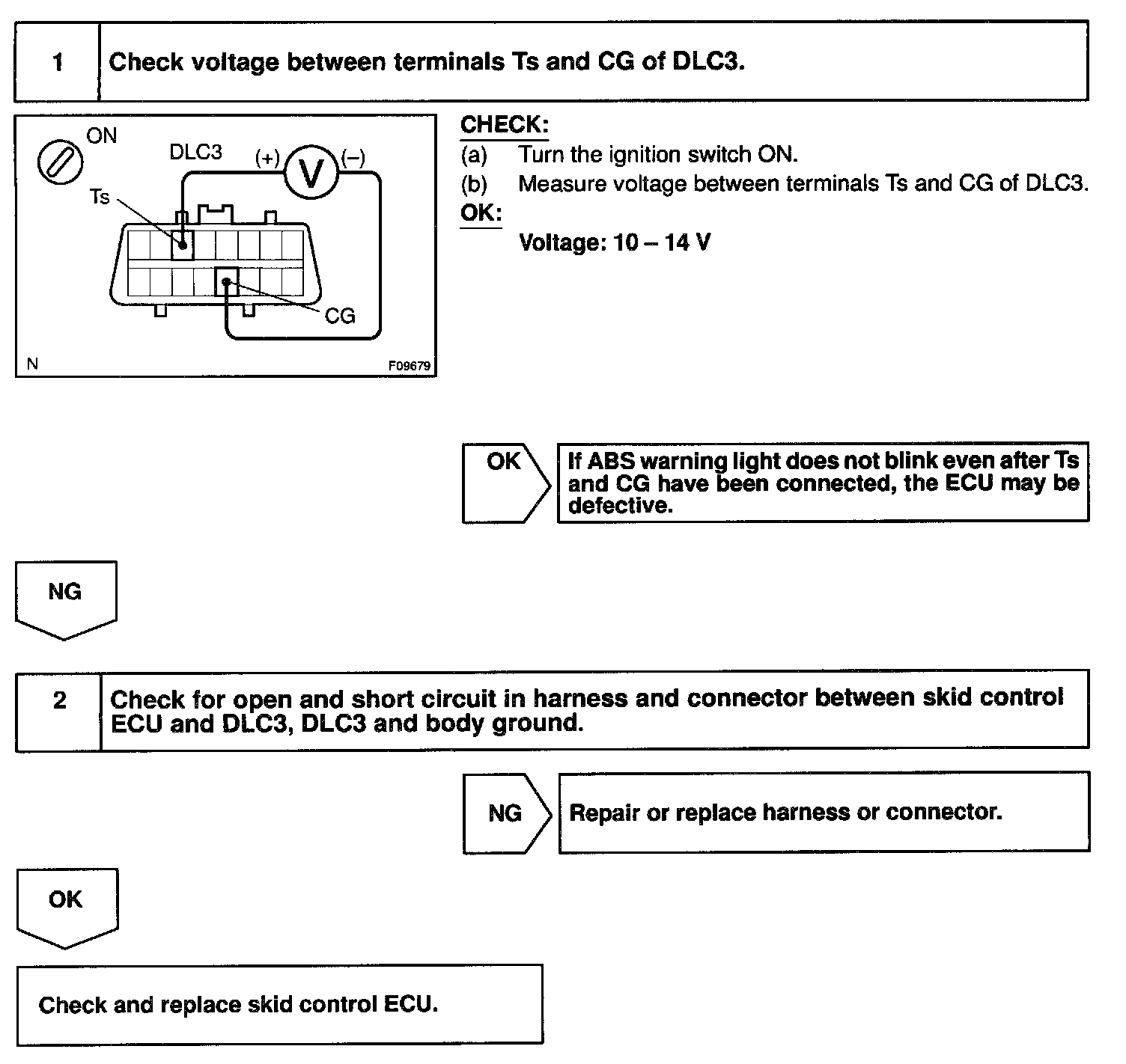 Transition to the sensor check mode can be performed by connecting terminals Ts and CG of the DLC3 and turning the ignition switch from OFF to ON.