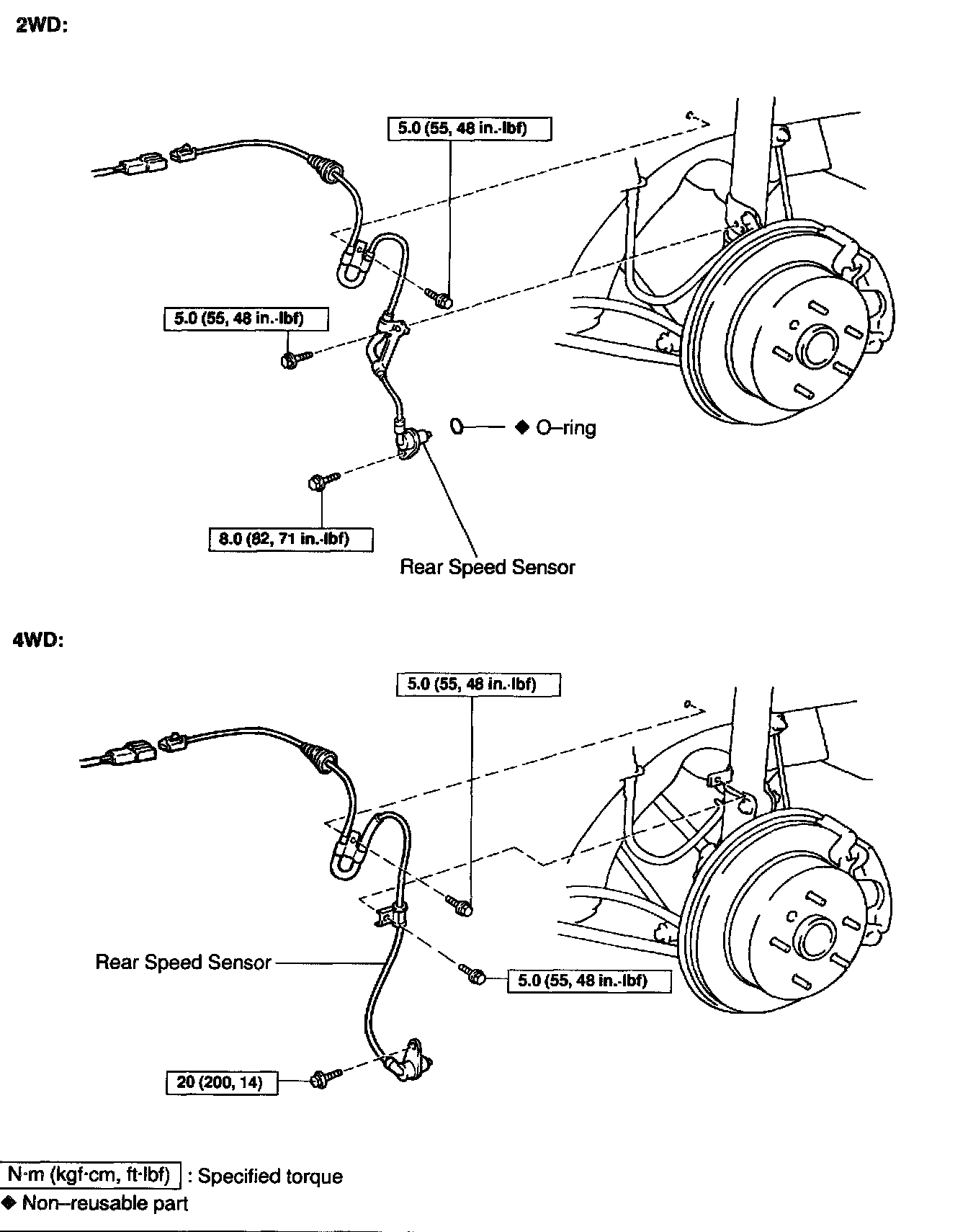 2WD: 8.0 Nm (82 kgf-cm, 71 inch lbs.)