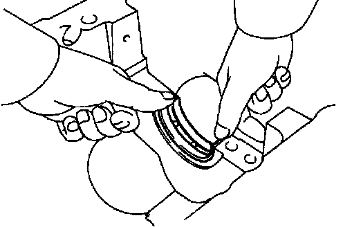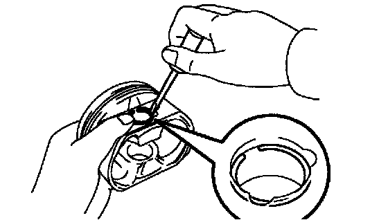 e) Using a small screwdriver, install a new snap ring on the other end of the piston pin hole.