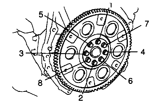 c) Install and uniformly tighten the 8 bolts in several passes, in the sequence shown.