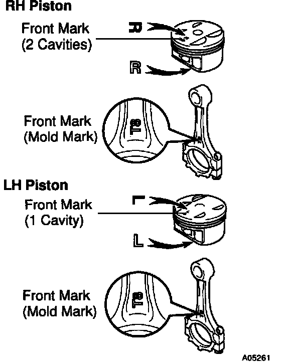 HINT: The shape of the piston varies for the RH and LH banks. The RH piston is marked with "R", the LH piston with "L".