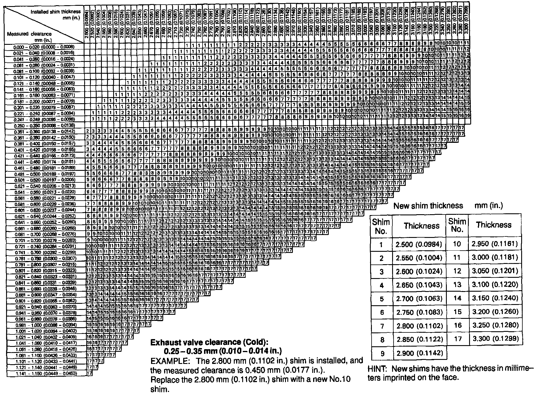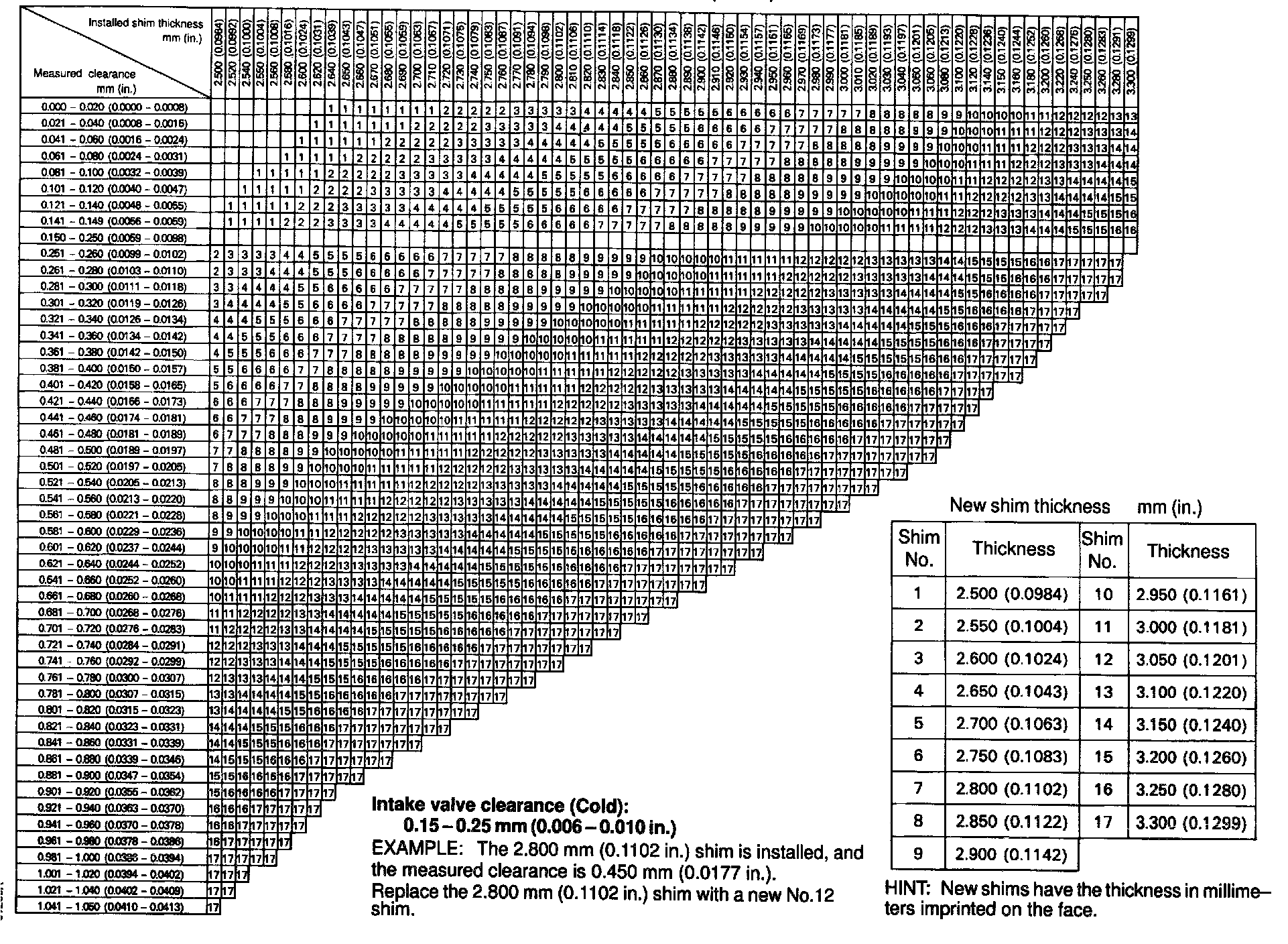 ADJUSTING SHIM SELECTION CHART
