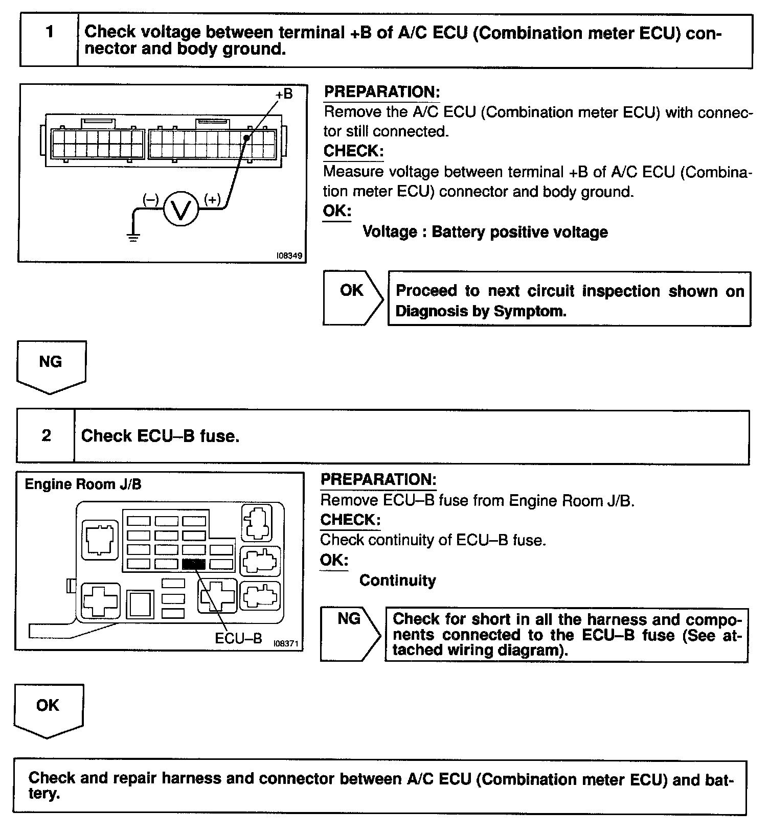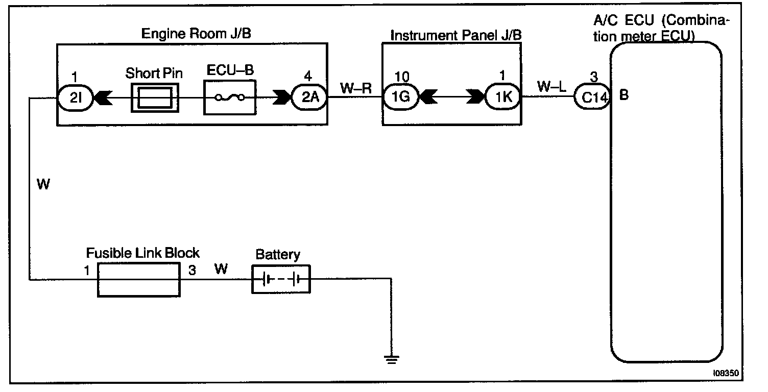 CIRCUIT DESCRIPTIONThis is the backup power source for the A/C ECU (Combination meter ECU). Power is supplied even when the ignition switch is off and is used for diagnostic trouble code memory, etc.