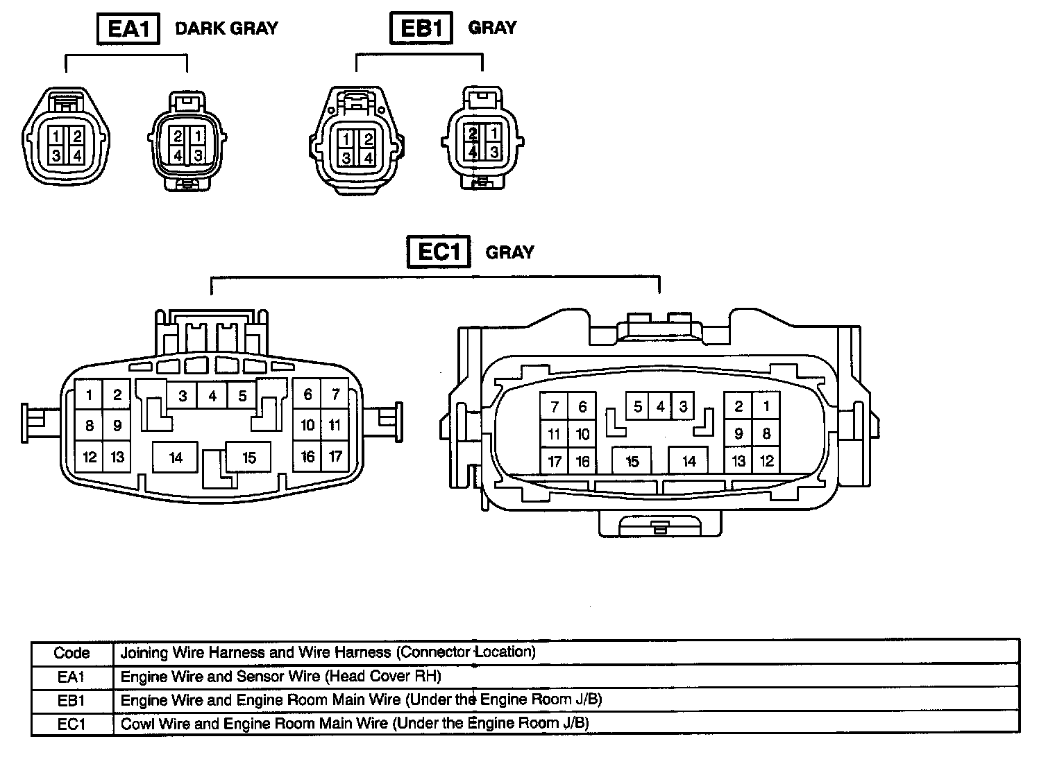 Wire Harness To Wire Harness Connectors (EA1 - EC1):