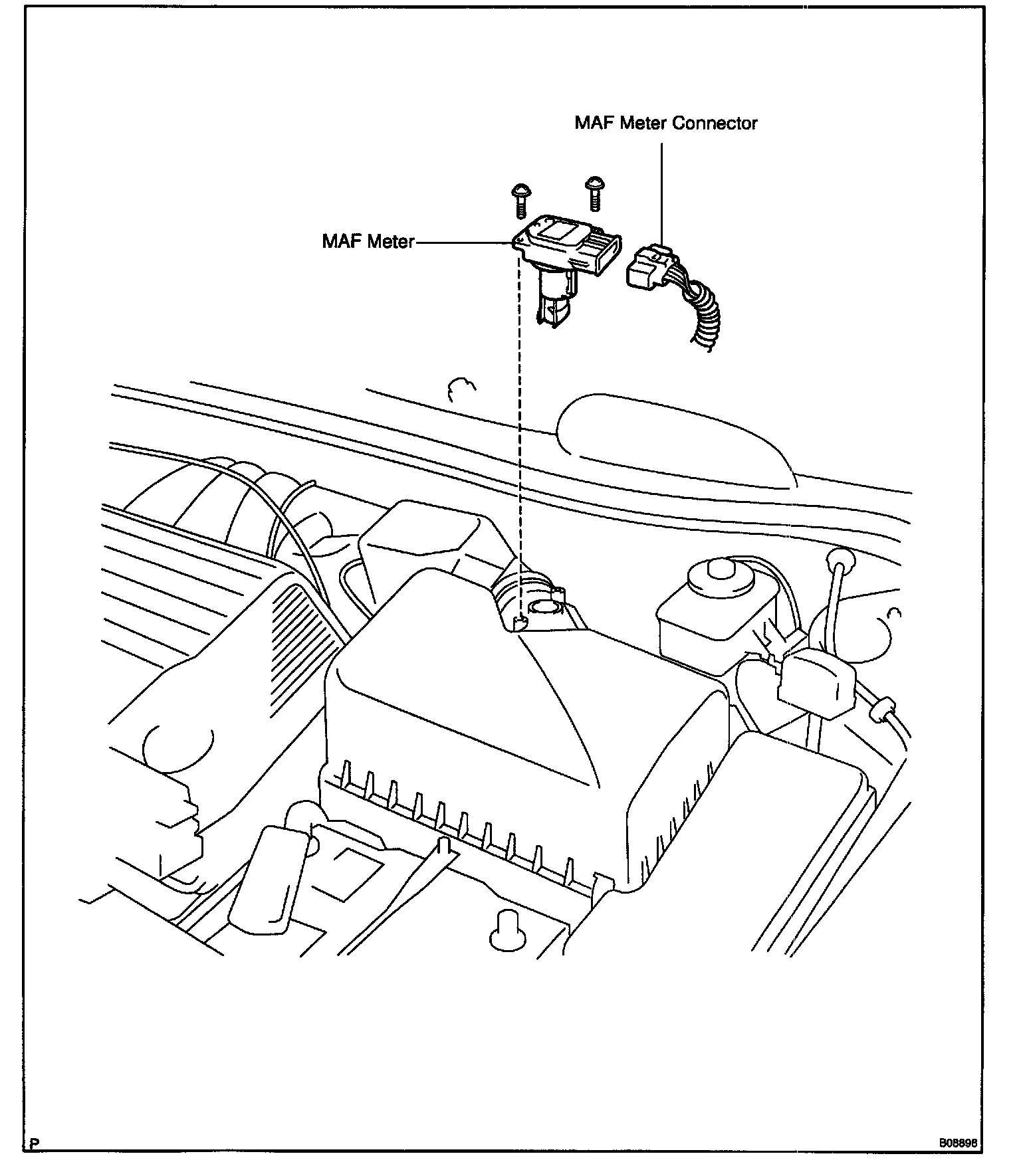 The Intake Air Temperature (IAT) Sensor is installed in the Mass Air Flow (MAF) Meter.
