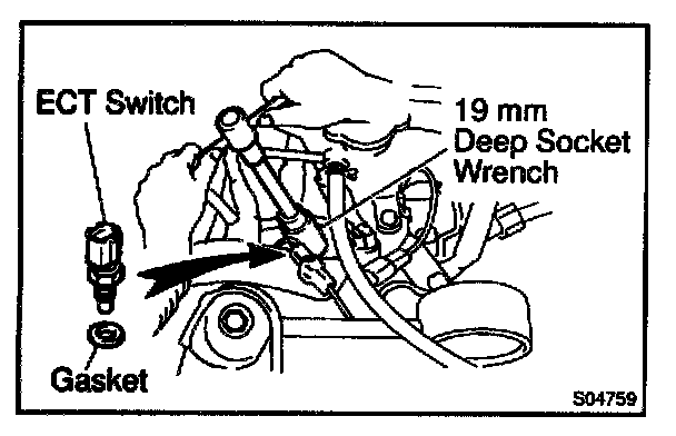 b. Using a 19 mm deep socket, install the ECT sensor.