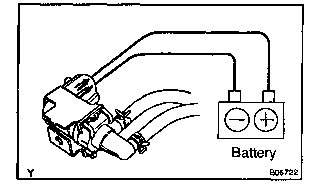 2. Disconnect the positive (+) and negative (-) leads from the battery from the VSV terminals for the EVAP