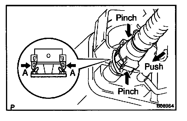 Push the connect deep inside, pinch portion A, pull out the connector.