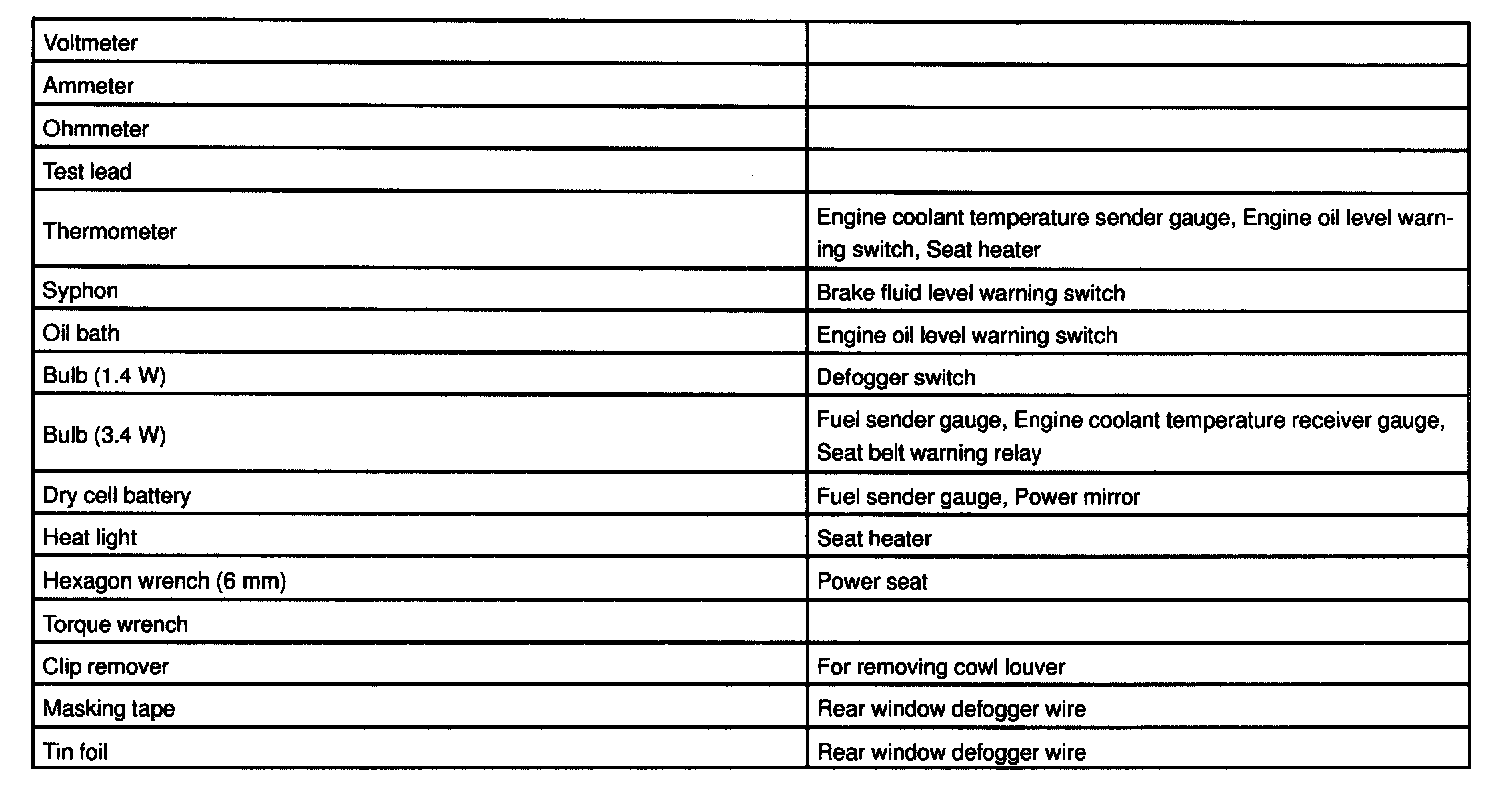 Body Electrical - Recommended Tools: