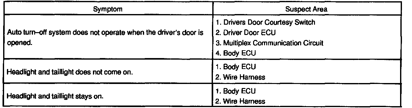 DIAGNOSIS BY SYMPTOMProblem Symptoms Table - Auto Turn Off System: