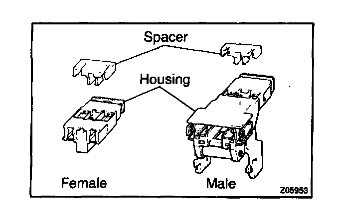 Each connector has a two-piece component consisting of a housing and a spacer. This design enables the terminal to be locked securely by two locking devices (the retainer and the lance) to prevent terminals from coming out.
