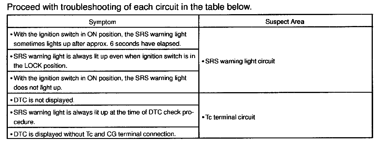 Problem Symptoms Table: