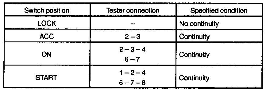 INSPECTION1. INSPECT IGNITION SWITCH CONTINUITY