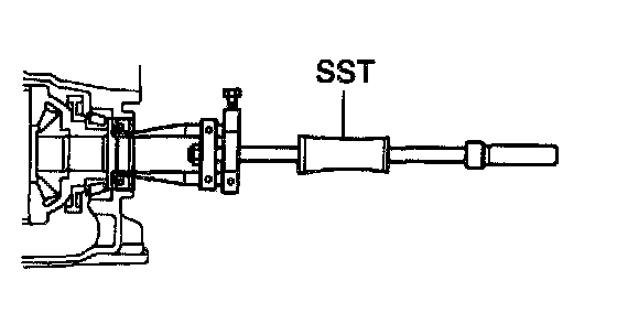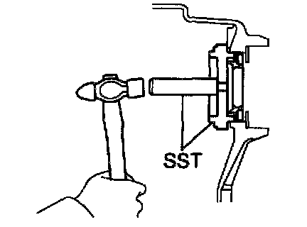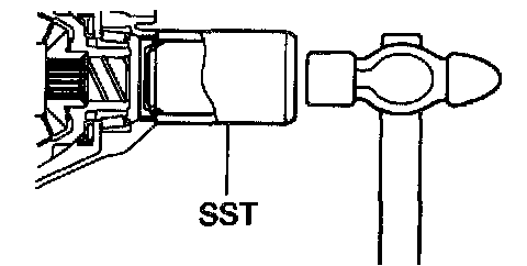 (a) Using SST and a hammer, drive in a new oil seal until its surface is flush until the case surface.