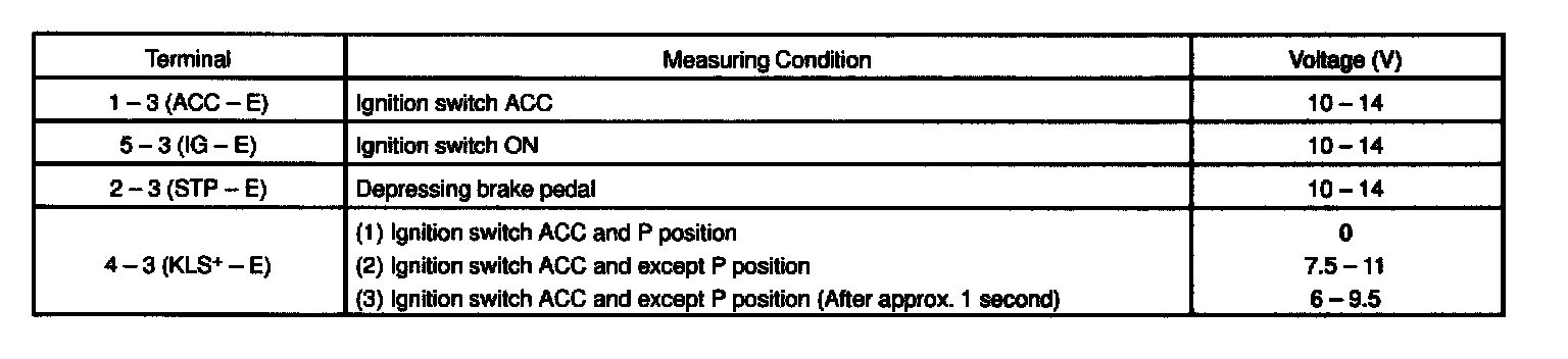1. INSPECT SHIFT LOCK CONTROL UNIT ASSEMBLY