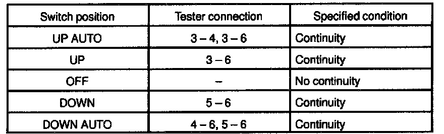 INSPECT POWER WINDOW SWITCH CONTINUITY
