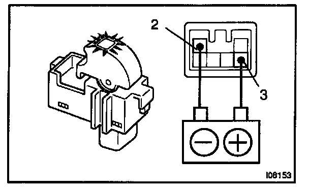 Connect the positive (+) lead from the battery to terminal 3 and the negative (-) lead to terminal 2, and check that the indicator light lights up.