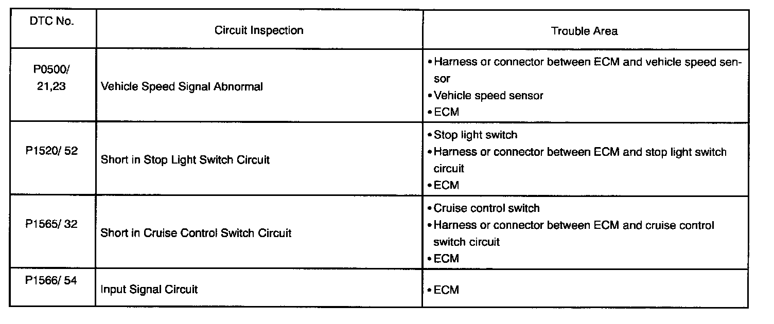 If a malfunction code is displayed during the DTC check, check the circuit listed for that code in the table and proceed to the appropriate DTC chart.