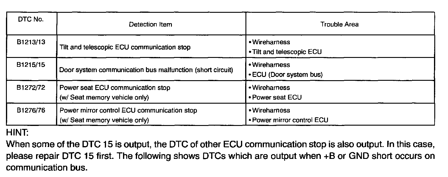 If a malfunction code is displayed during the DTC check, check the circuit listed for that code in the table (Proceed to the DTC chart given for that circuit).