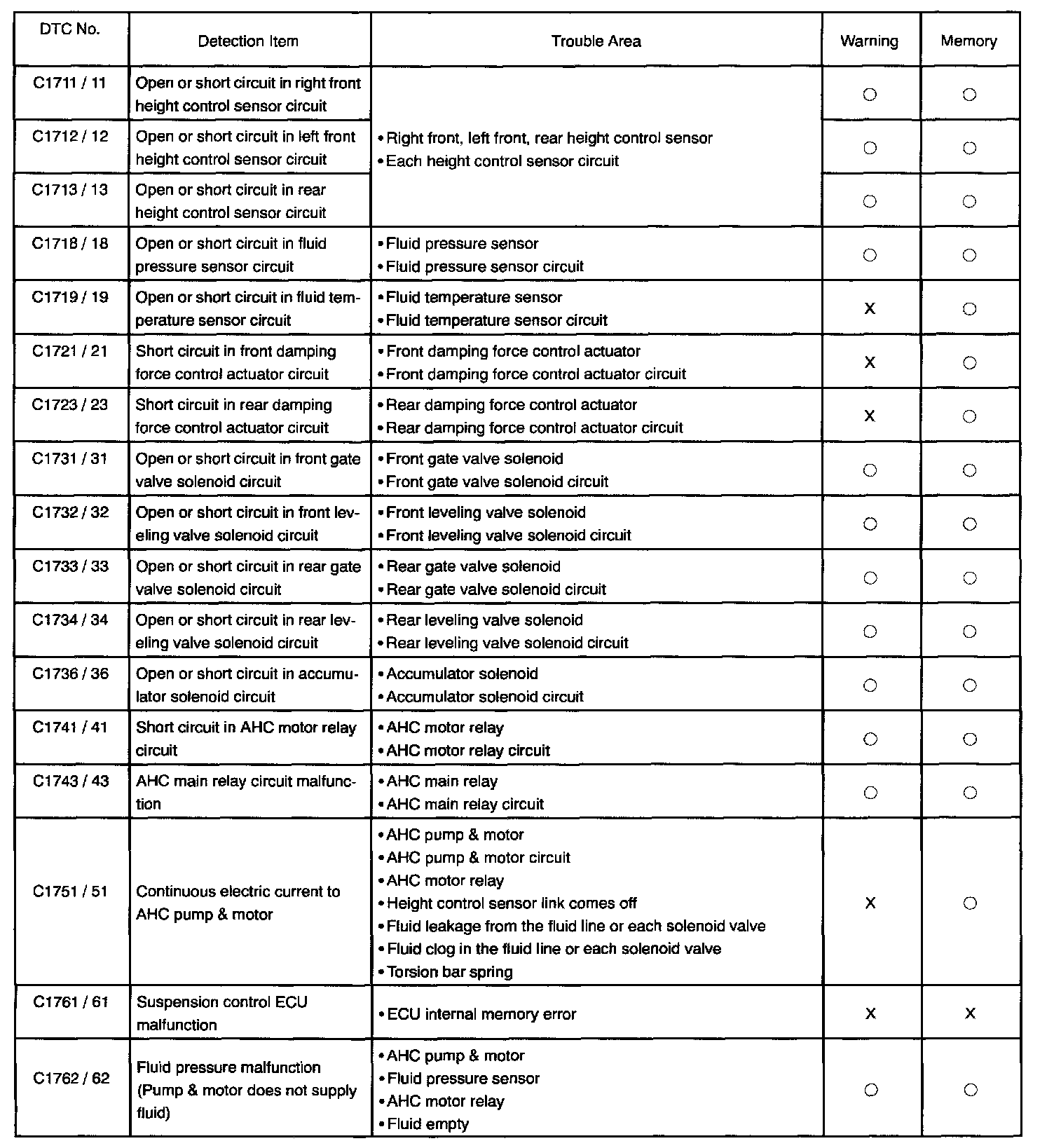 DIAGNOSTIC TROUBLE CODE CHARTC1711/11 - C1762/62: