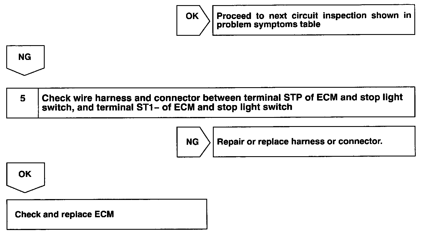 If the harness connected to terminal STP has an open circuit, terminal STP will have battery positive voltage and the cruise control will be turned OFF.