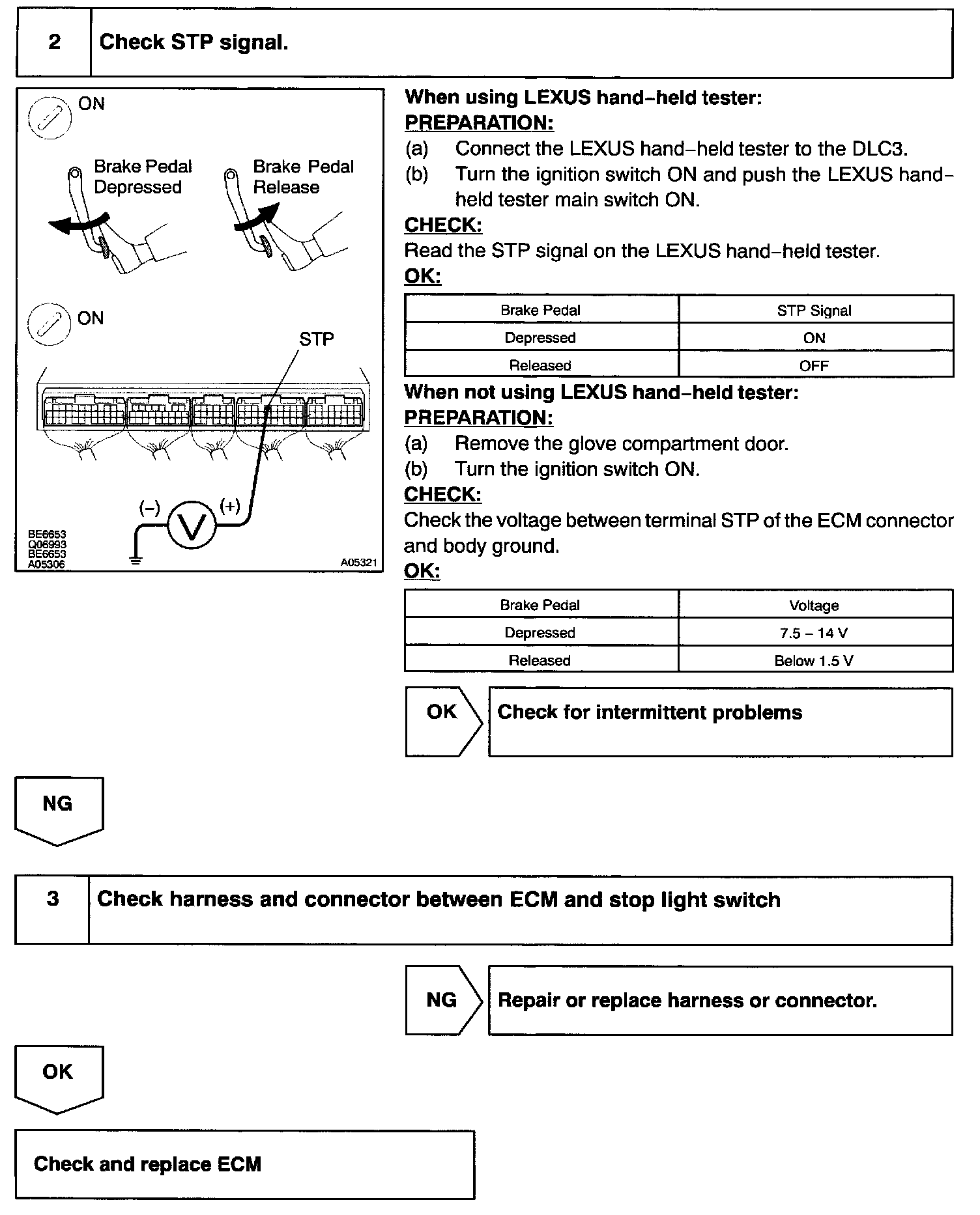 The STP signal is used mainly to control the fuel cut-off engine speed. (The fuel cut-off engine speed is reduced slightly when the vehicle is braking.)