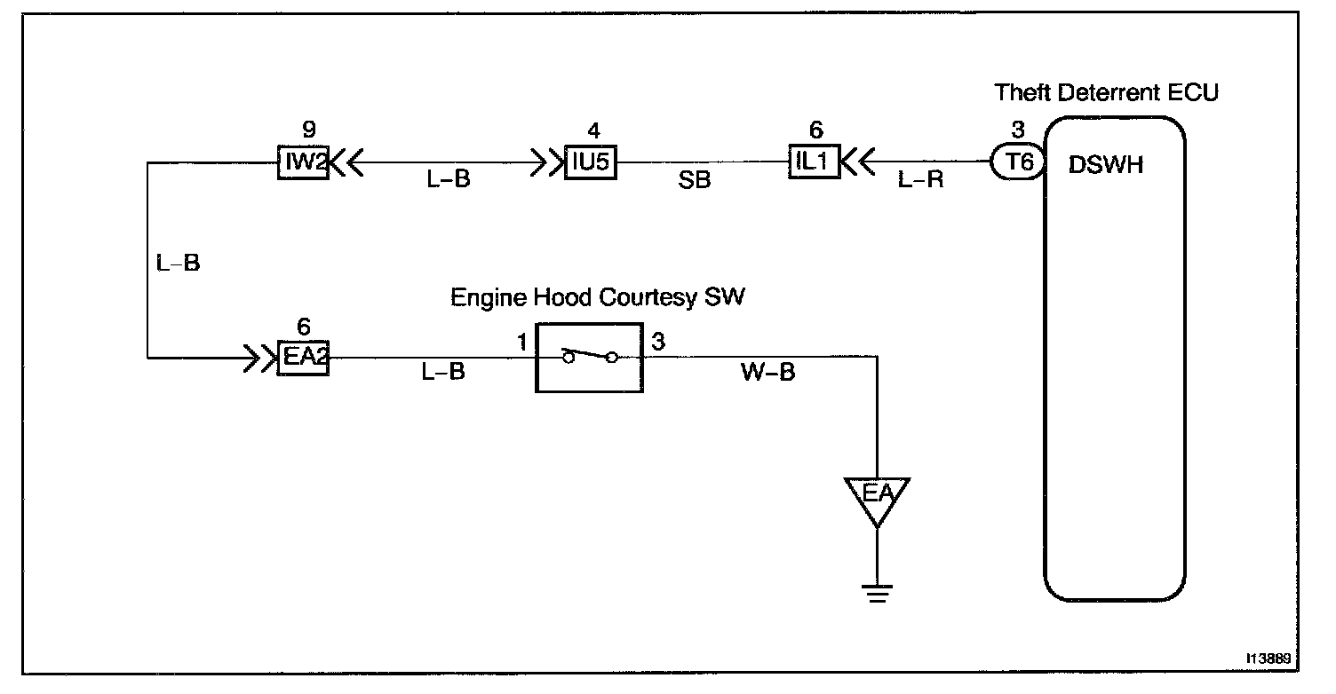 CIRCUIT DESCRIPTIONThe engine hood courtesy switch is built into the engine hood lock assembly and goes ON when the engine hood is opened and goes OFF when the engine hood is closed.
