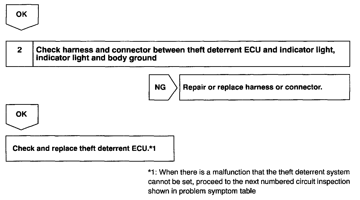 CIRCUIT DESCRIPTIONWhen the theft deterrent system is preparing to set, this circuit lights up the indicator light. When the system has been set, it continually turns the indicator light ON for 1 second and turns it OFF for 1 second, thus blinking the indicator light.