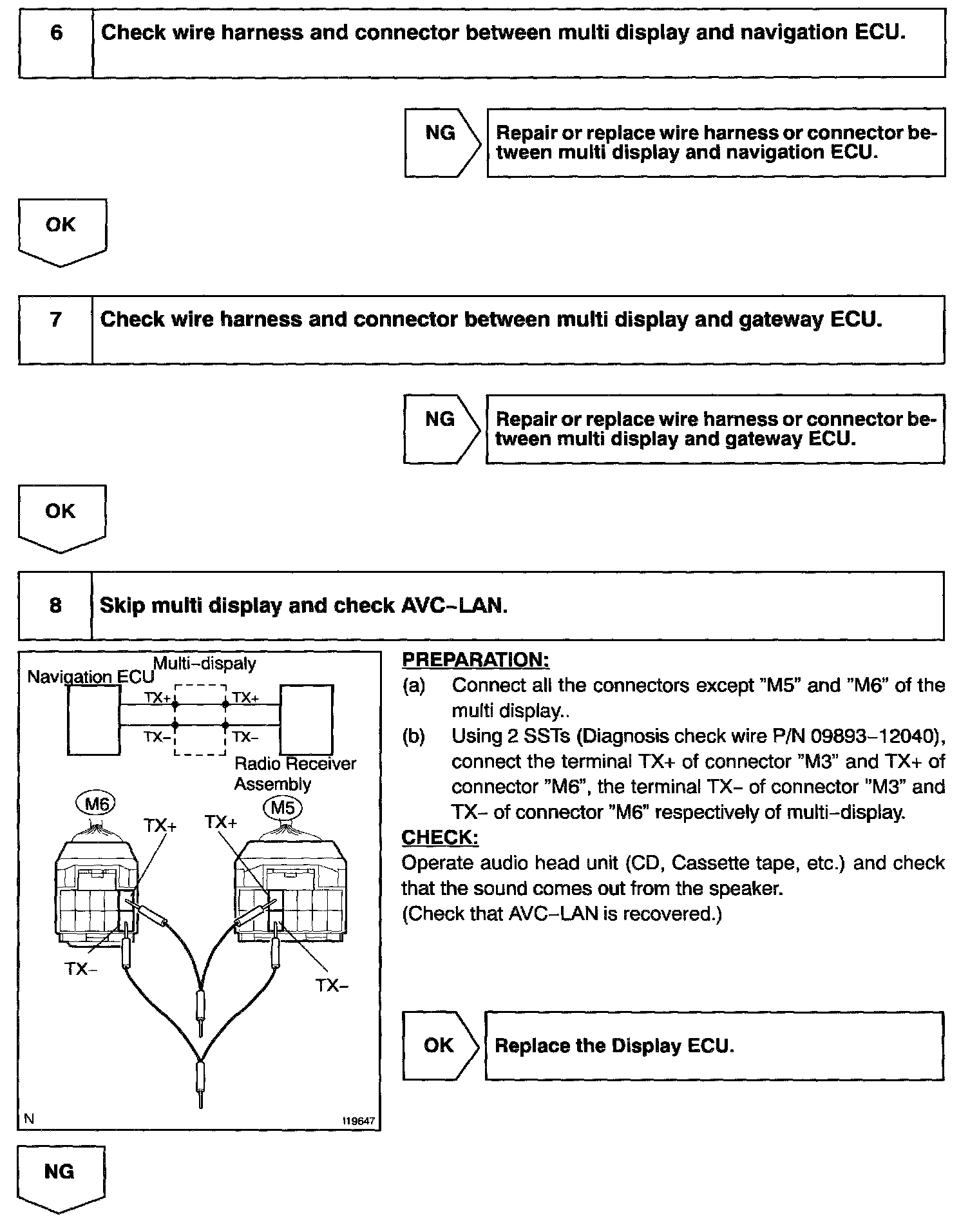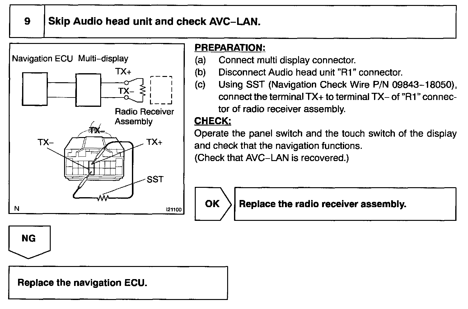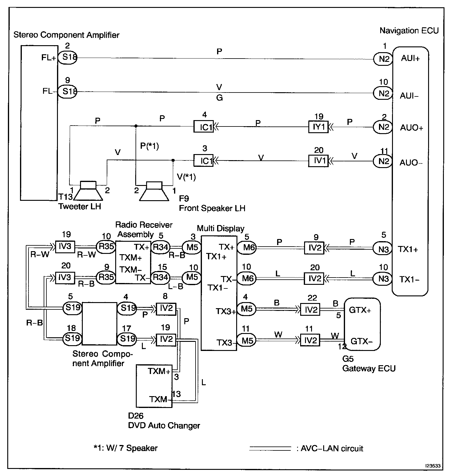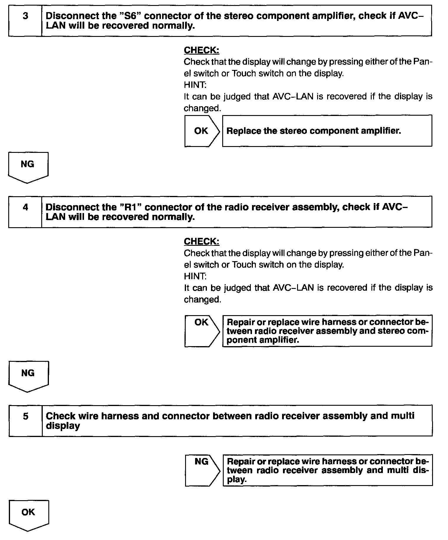 In this AVC-LAN, multi display becomes the master of the communication, and the radio receiver assembly has a terminator necessary for transmitting the communication.