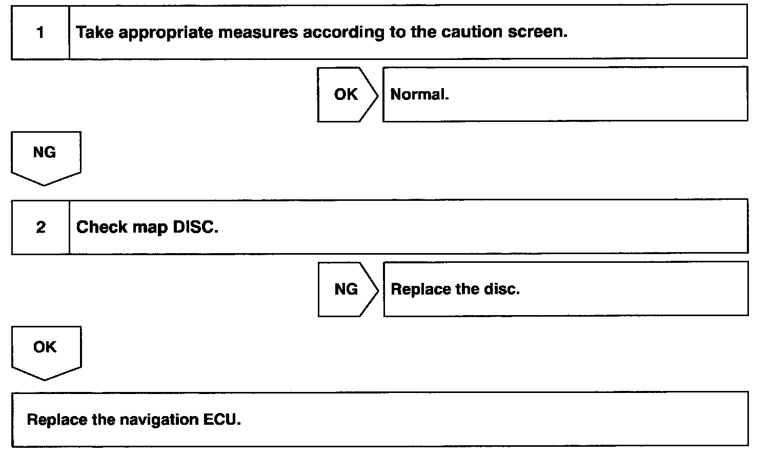 13. MAP SCREEN DISPLAY DOES NOT APPEAR (DISC CAUTION SCREEN DOES NOT CHANGE)
