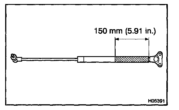 - If the back door stay is to be replaced, drill a 2.0 - 3.0 mm (0.079 - 0.118 in.) hole in the bottom of the back door stay as shown in the illustration to completely release the high-pressure gas before disposing of it.