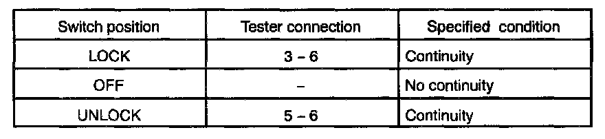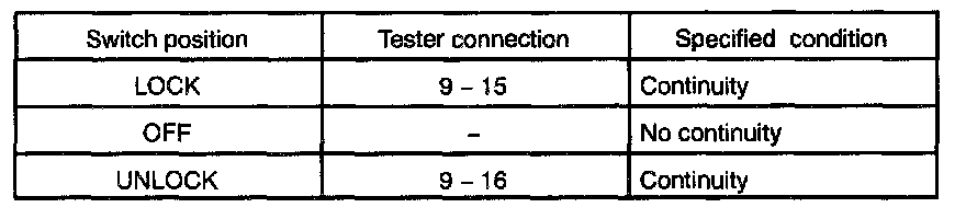 INSPECT DOOR KEY LOCK AND UNLOCK SWITCH CONTINUITY