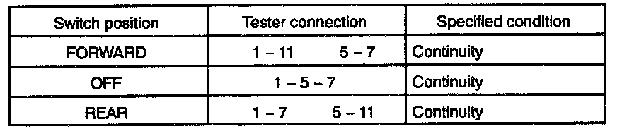 If continuity is not as specified, replace the switch.
